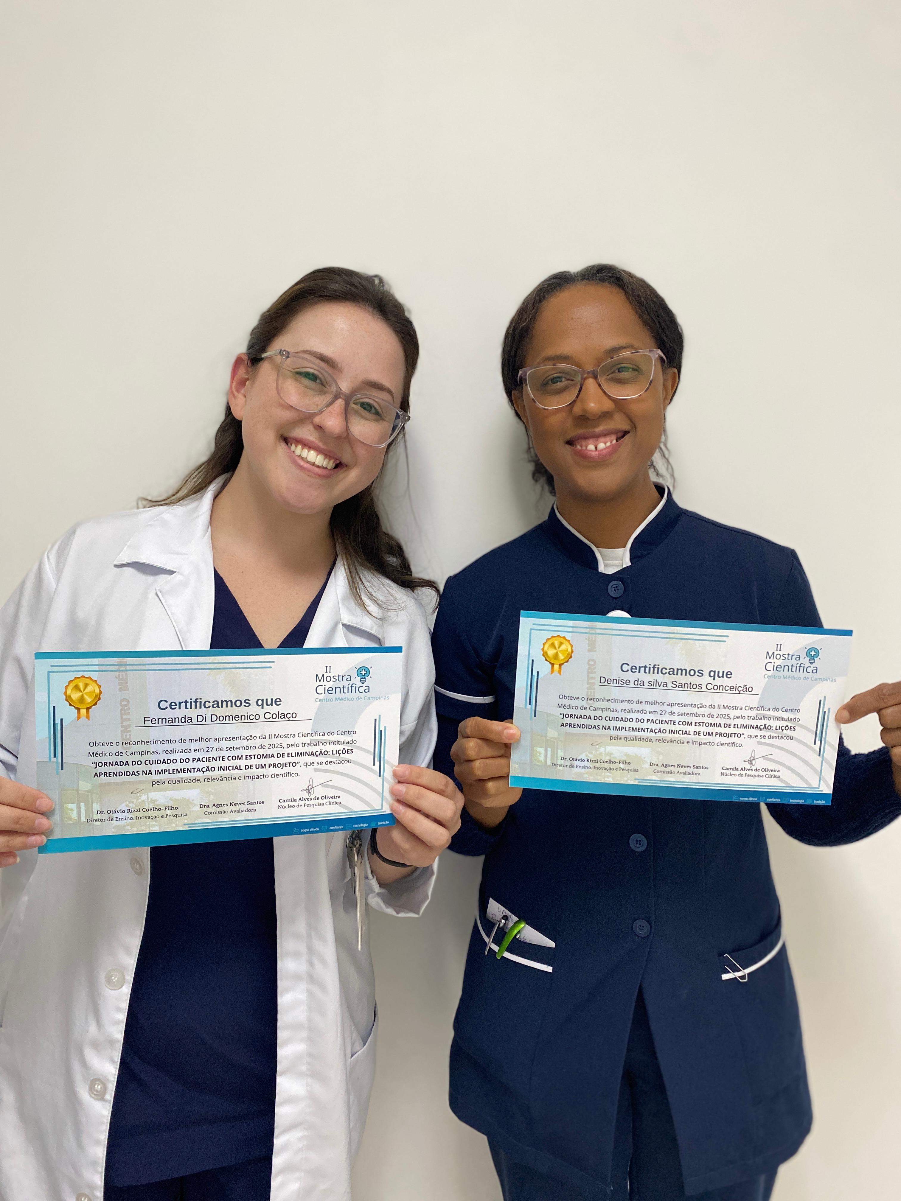 No dia 27 de setembro de 2025, o Centro Médico de Campinas (CMC) promoveu o II Simpósio de Transplantes, realizado em conjunto com a II Mostra Científica. O evento reuniu especialistas de diversas áreas, como Urologia, Cardiologia, Hematologia, Ortopedia, Gastroenterologia e Transplante Hepático, além de profissionais da equipe multiprofissional, para discutir avanços, desafios e perspectivas na área de transplantes. A Mostra Científica destacou a produção científica e o comprometimento das equipes assistenciais e de pesquisa. Foram apresentados trabalhos de grande relevância, refletindo o compromisso do CMC com a inovação e a melhoria contínua do cuidado em saúde. Temos o prazer de anunciar que o 1º lugar foi concedido ao trabalho: “Jornada do cuidado do paciente com estomia de eliminação: lições aprendidas na implementação inicial de um projeto”, de autoria de Denise da Silva Santos Conceição, Fernanda Di Domenico Colaço, Gabriela Livio Emidio e Simone Aparecida Cavalari Chagas.